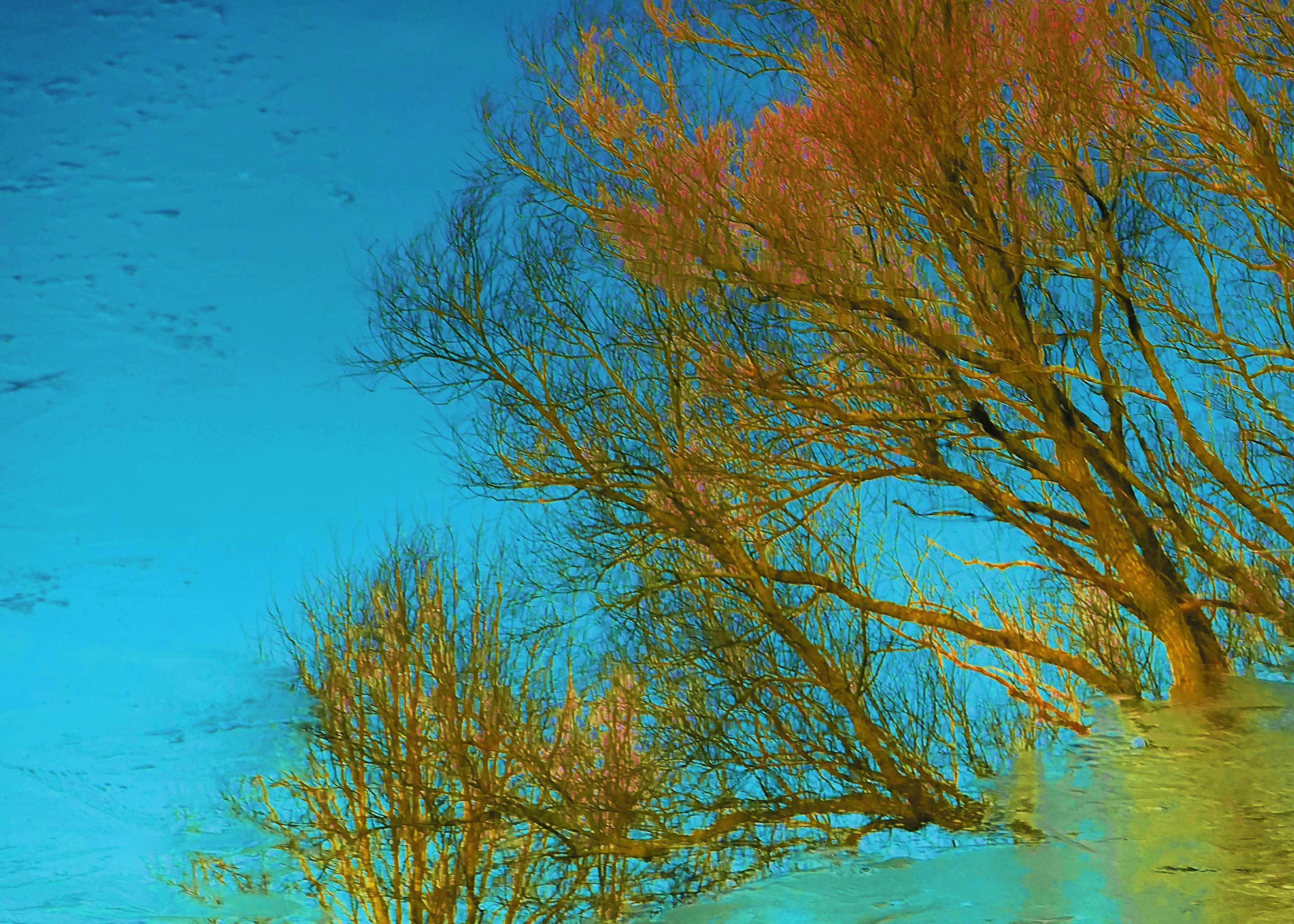 Fine art print op dibond. Andere formaten op aanvraag De weerspiegelingen van het wateroppervlak boeien mij in hoge mate. Deze reflecties zijn altijd in beweging en worden gevormd door het invallende licht, de omgeving en de wind. De grillige lijnen en chaotische patronen beroeren de innerlijke emoties maar omdat het een momentopname is verstild het beeld. Dit beeld wordt bewerkt om tot een artistieke impressie te komen. De gewone tafrelen worden getransformeerd in een sfeer van kleuren en vormen. Het is winter en het verlangen naar de lente is duidelijk voelbaar. Het beeld brengt een energieke sfeer in iedere ruimte.